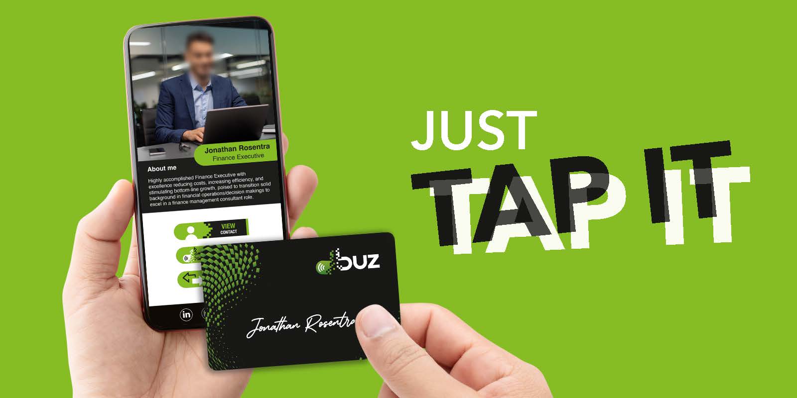 5- Dbuz card, using the NFC Technology, allows you to share the right contact details with the right counter party through one tap without downloading any app or using any paper card.